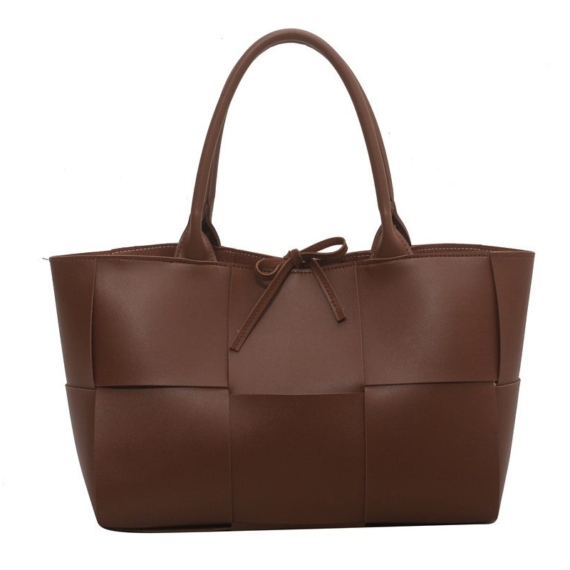 - Design Moderno: Estilo tote com detalhes em couro entrelaçado quadriculado, ideal para o dia a dia.